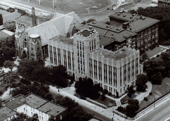 | 9. Sarah Emily Creighton’s desire for Creighton students to have a proper place to worship resulted in St. John’s Collegiate Chapel, dedicated May 6, 1888. The creation of St. John’s Parish in January 1897 meant that the church could conduct baptisms, weddings and funerals. A series of expansions between 1920 and 1922 doubled the church’s capacity, but it was not until 1977 that the east tower received a steeple and hands for its clock. |