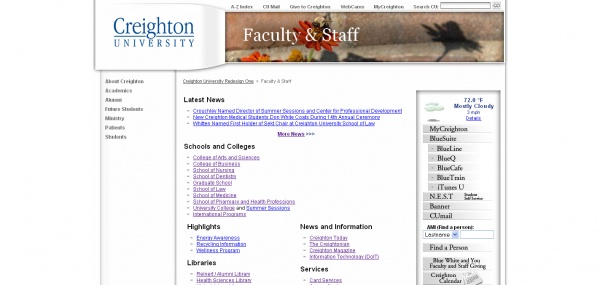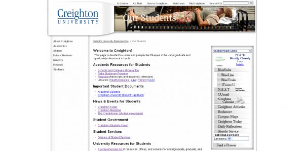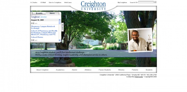 On August 21, 2009, Creighton University launched a newly designed website. The main pages were revised to allow for better navigation and flexibility. With the new look, visitors can find information about Creighton more quickly and easily.