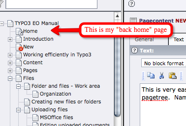 Notice the small arrow in the lower right corner of the page "Home" in the image above. That means this is a shortcut page.