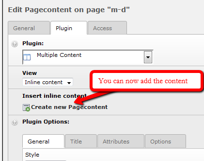 You'll be given the exact same options as if you were adding content in the page module or the list module. Add your content and save it. You'll get another "Create new Pagecontent" above the one you just created.