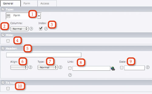 - Index - if you are using a Section Index Menu (creating bookmarks to the content on the page), that menu would show only the content elements with Index checked.