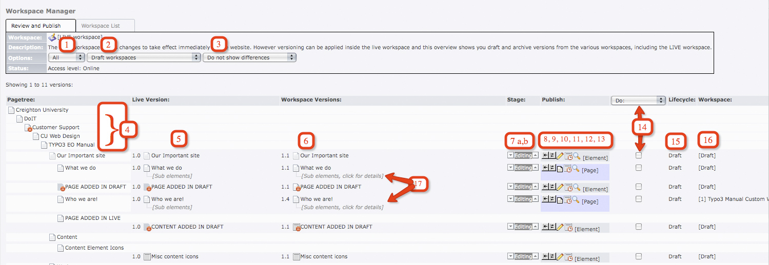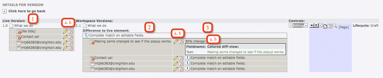 5. The current live version.  You can click on the title to go to the Display Versions for that element.