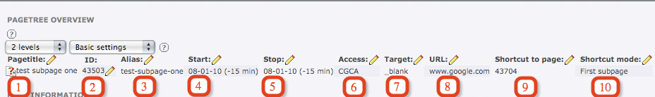 Pagetree overview will give you up to 3 levels with 3 different views of basic information on the pages in your site. In the list module we covered adding fields to the list so that you can do a quick edit on page properties. Some of these are automatically included here, so you do not have to add to the list module to edit them.