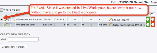 Once it's fixed, he can swap it with the current live version without ever going to Draft Workspace.