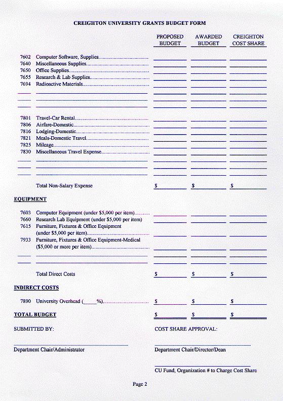 Upon receipt of an award document OGA will compare the awarded budget to the proposed budget. OGA will forward a copy of the award statement along with the Creighton University Grants Budget Form to the PI. If the award is less than the proposed amount the PI and Department Administrator will determine whether or not the University will voluntarily incur a cost sharing obligation. If so, all three columns of the Grants Budget Form will need to be filled out and the appropriate approvals obtained. If not, only the first two columns of the form need to be completed. Any cost sharing included in the original proposal and/or subsequently through negotiation must be documented with the amount and source of funds by fund and organization codes with appropriate approvals.
