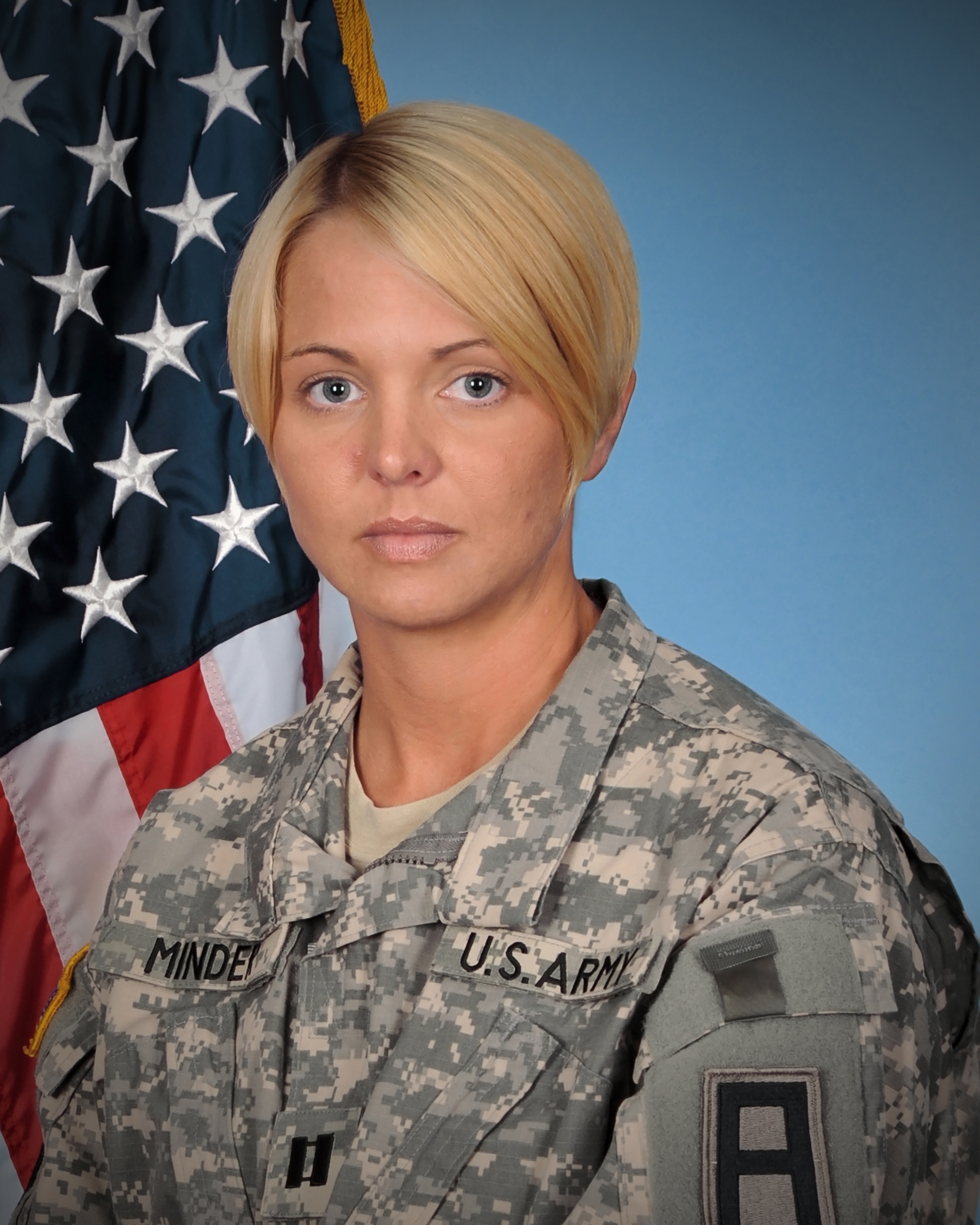 CPT Minder received a Bachelor and Master of Science in Retail and Business Management from the University of South Carolina. Her military schooling includes Basic Training, Motor Transport Operator Course, Junior Non-Commissioned Officer Course, Primary Leadership Development Course, Basic Non-Commissioned Officer Course, Basic Officer Course, Transportation Officer Basic Course, Pre-Commander?s Course, UA Basic Course, Equal Opportunity Leader Course, Logistics Captains Career Course, Instructor Training Course, Recruiting Operations Course, and Master Resiliency Course. Her awards include one meritorious service medal, two Army Commendation Medals, four Army Achievement Medals, a Good Conduct Medal, two National Defense Service Medals, a Global War on Terror Expeditionary Medal, a Global War on Terror Service Medal, two Armed Forces Reserve Medals, two Non -Commissioned Officer Professional Development Ribbons, Army Service Ribbon, and an Army Superior Unit Award.