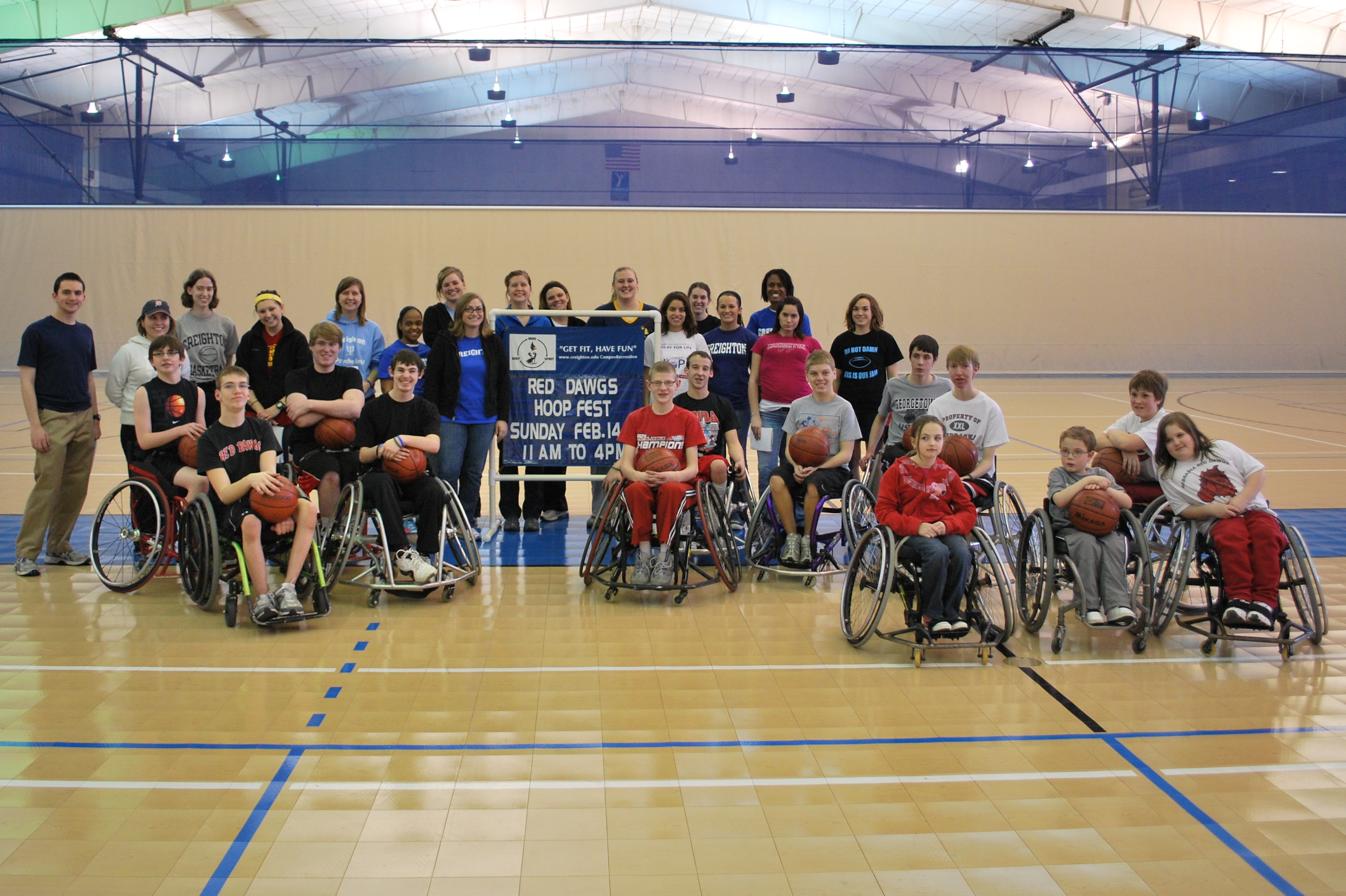 The Student Empowerment Network has established a partnership with the Eastern Nebraska Wheelchair Athletic Association (ENWAA) and the local Red Dawg Wheelchair Basketball Team to raise awareness about athletic opportunities available to persons with disabilities. In February 2010, SEN teamed up with the Red Dawgs basketball team to put on a hoop fest. Students volunteers from SEN and APO helped rebound and keep score as the players rotated baskets, and made as many hoops as they can.