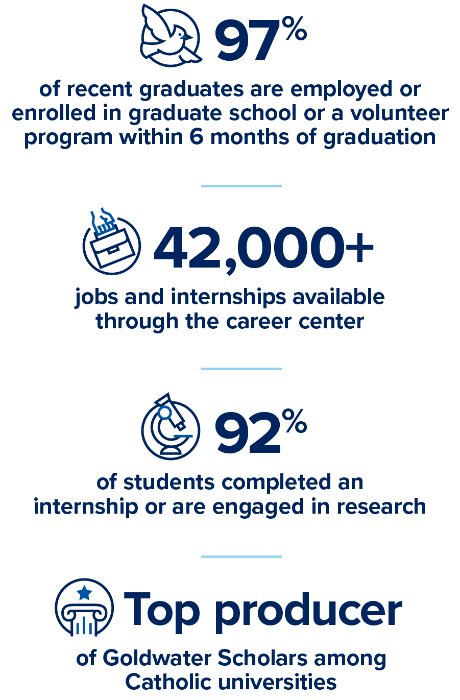 98% recent grads employed, pursuing advanced degree or volunteering six months