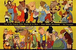1925? "The Fable Restaurant" postcard with mural by Jo Mora, advertising The Fable Restaurant in San Francisco's Hotel Drake-Wiltshire. 5 3/8" x 3½". C.T. Art-Colortone. Genuine Curteich, Chicago. $15.65 from Jill Curran, Little Rock, AR, through Ebay, May, '99. Extra copy for $10.76 from Dan Vidaurri, Chico, CA, through Ebay, Oct., '00.