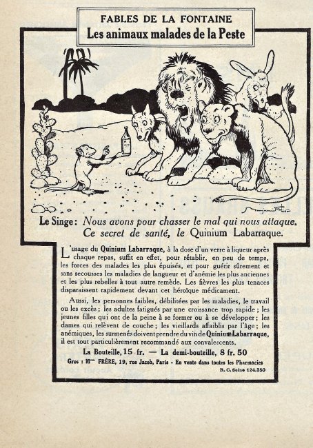 Animals Sick in the Plague: The monkey's advice: "To cure what ails us, we need to take Labarraque Quinine." | |