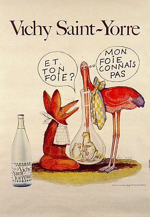 | 1994 Le Renard et la Cicogne (fable de La Fontaine). Affiche de André Dahan pour l'eau de Vichy, 1970. Bibliothéque Forney E 198283. Edité par la Société des Amis de la Bibliothéque Forney, Paris. Gift of Anne Stevenson Hobbs, Dec., '97.