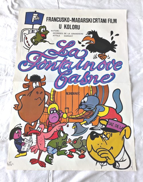 2000? Croatian advertising poster for “French-Hungary Color Cartoon Film: La Fontaine’s Fables.” Georges de la Grandiere and Attila Dargay. Croatia Film. 19.5” x 27”. Printed by Kjesnik Marketing Agency. What a lively advertisement! Here we have another example of how fables get around. France – Hungary – Croatia. The poster makes me want to see the film!