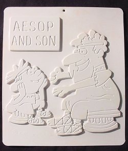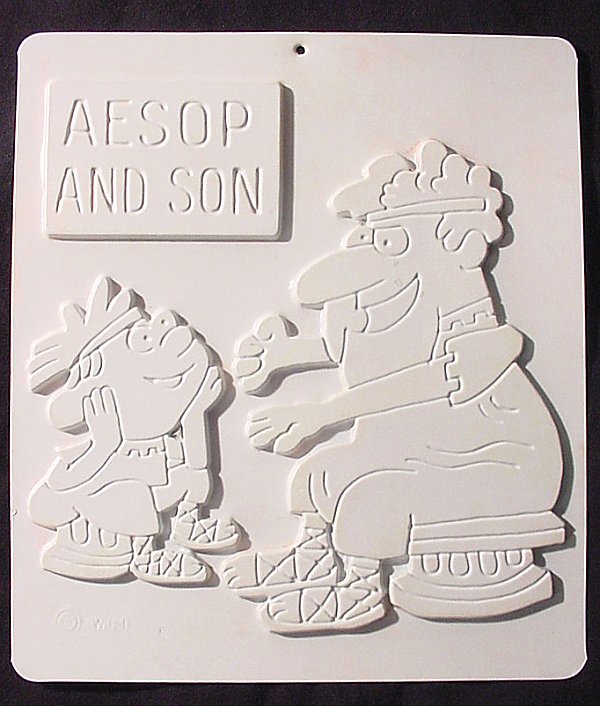 1960? Aesop & Son wall plaque. 8" x 11" sheer plastic. $9.99 from Bob and Janice Johnson, Scottsdale, AZ, through Ebay, May, '01.