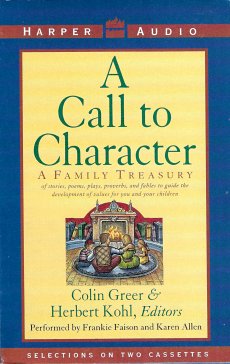 1995 A Call to Character Tape Two: A Family Treasury of stories, poems, plays, proverbs, and fables to guide the development of values for you and your children. Colin Greer & Herbert Kohl, editors. Performed by Frankie Faison and Karen Allen. Made in USA. NY: Harper Audio: HarperCollins Publishers. $3.99 from Book Express Online through Bibliofind, August, '97.