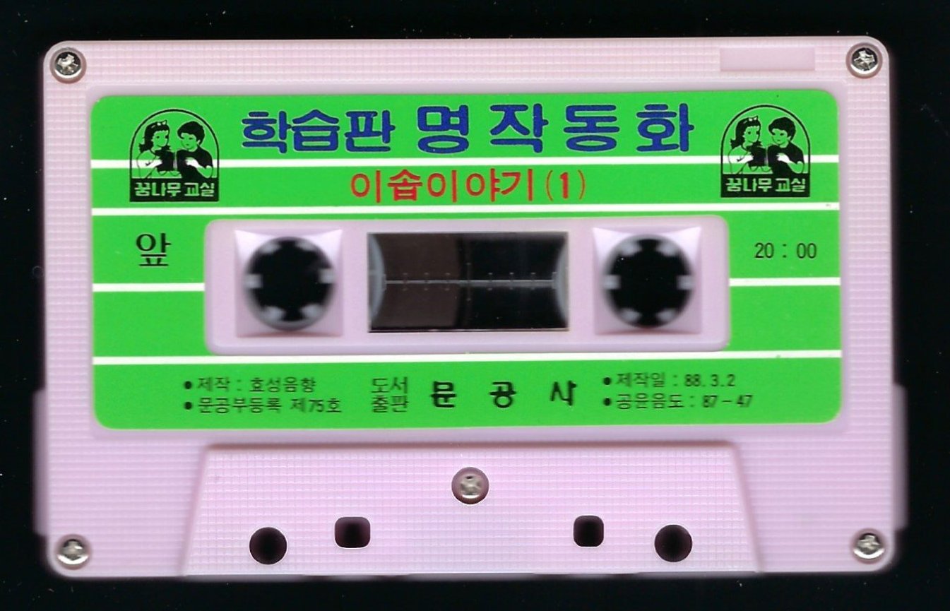 1988 [Korean]. (Aesop's Fables). For use with two volumes of Aesop's Fables published 1990 and 1989, respectively, by Mun Gong Sa in Seoul. Bibliographical information on cassette in Hangu. $2.10 on street near Eastgate in Seoul, June, '90.