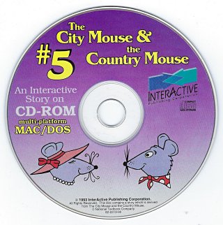 1993 The City Mouse & the Country Mouse Interactive CD-ROM. Production Manager George Fleischman. Produced in USA. Interactive Publishing Corporation. $10 at the Omaha Computer Swap Meet, May, '98. One extra copy of the disc for $5 from an Omaha computer fair.