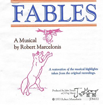 1993 Fables: A Musical by Robert Marcelonis. CD. A restoration of the musical highlights taken from the original recordings. Produced by John Simon at J-Dog Music. JDM002. Gift of Miriam Barnett, Director of the musical, together with a videocopied program and personal note.
