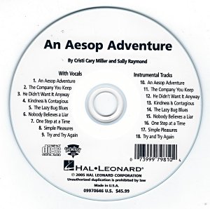 2005 An Aesop Adventure. For use with a booklet of the same name, featuring "Fables, Songs and Activities for the Elementary Classroom." By Cristi Cary Miller and Sally Raymond. Hal Leonard Corporation. $5 from an unknown source, Sept., '10.