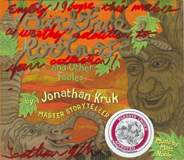 2008 Barkface & Rootnose and Other Fables. Jonathan Kruk, Master Storyteller. Music by Matt Noble. Dedicated to "Fr. Greg -- One tale is good till another is told." Signed by Jonathan Kruk. Berger Platters. Gift of Jonathan Kruk, Nov., '09. A second copy is inscribed "Enjoy! I hope this makes a worthy addition to your collection! Jonathan Kruk." This copy adds to the first: "Parents' Choice Approved."