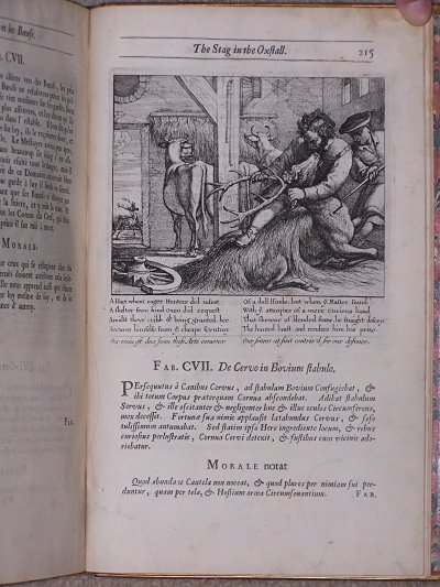 This CD contains Aesop in four languages. The key to the English edition may be that the publisher is listed as "Cassell, Petter, Galpin, & Co." The company took that specific name in 1878. Note also the comment after the introduction by JBR(undell) that about 130 fables not in the first and second editions have been added by another editor. A guess says that this is the edition in our collection for which I have guessed a date of 1890. The break before the added 132 fables comes at the top of 219 here, as in that edition. 1869 and 1874 may have been the dates of the first and second editions, both published, as I believe, without clear indication of a date of publication. The German editionlisted as published in 1479, seems to be an authentic Steinhoewel, part of the Rosenwald collection given to the Library of Congress. The Latin, likewise from Rosenwald and LC, is the Sebastian Brant edition of 1501, printed by Jacob of Pfortzheim . The illustrations are hand-colored. There seems to be another book bound together with Brant's "Esopus." The Spanish version is from Jacob Cronberger in 1521. This disc is a richer resource than I had thought! To get a menu, click on "CD-Start."