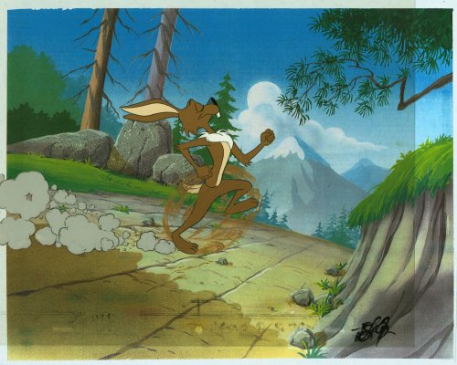 The seller identified this scene with Bill Cosby's Aesop, but I am unsure of that identification. As someone unacquainted with animation techniques, I find the working together of the various cell layers fascinating! The background here is so similar to that in my other group of cells that I wonder if they may not have come from the same film.