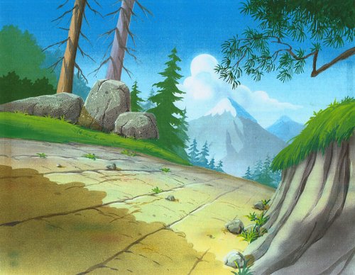1971? Background and three cells for an animation of TH. $15 from 1vegaseller through Ebay, March, '21.
