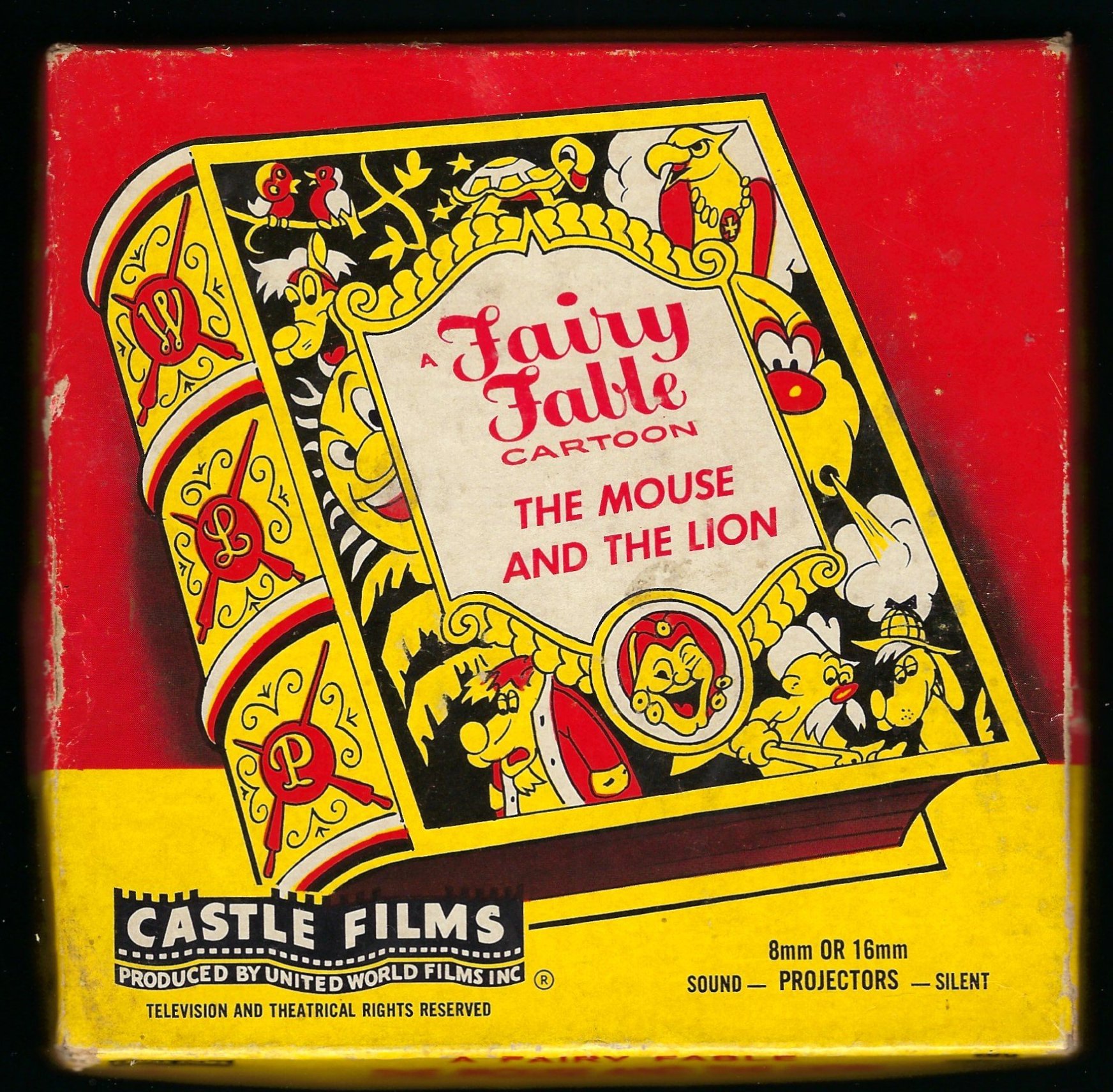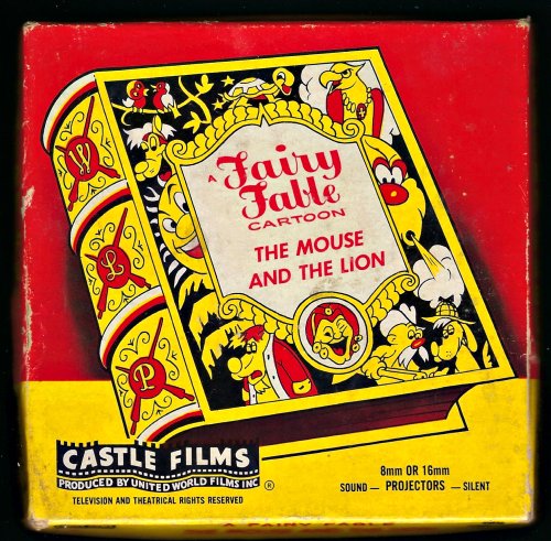 1960? "The Mouse and the Lion." A Fairy Fable Cartoon. Castle Films. Produced by United World Films, Inc. No. 532. 8 MM Complete Edition. "8mm or 16 mm. Sound or silent." $5.99 from Chris Sundblad, Bay Point, CA, through Ebay, Feb., '00.