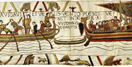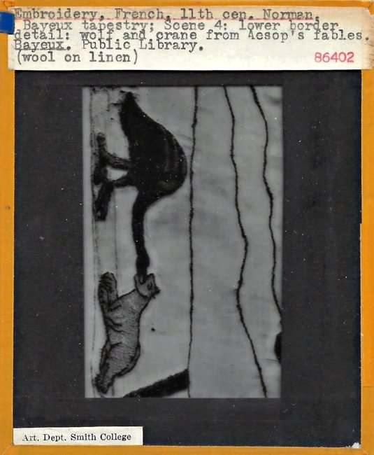 1940? Glass slide of WC from the Bayeaux Tapestry. 4” x 3.25”. Art Dept., Smith College. Unknown source.