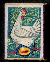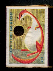 1950? Fourteen French matchboxes, each giving the title and an illustration for a fable of either Jean de La Fontaine or Florian. 13 Euros for thirteen matchboxes from Romuald Outrequin, Toulon, France, through Ebay, Jan., '02. These join a set I had bought from Mr. Outrequin earlier.