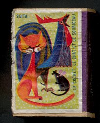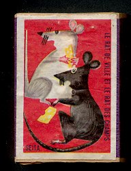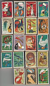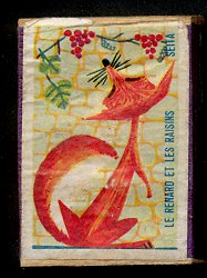 1950? Twenty-nine French matchboxes, each giving the title and an illustration for a fable of either Jean de La Fontaine or Florian. £14 from lifeiselsewhere through eBay, April, '03.