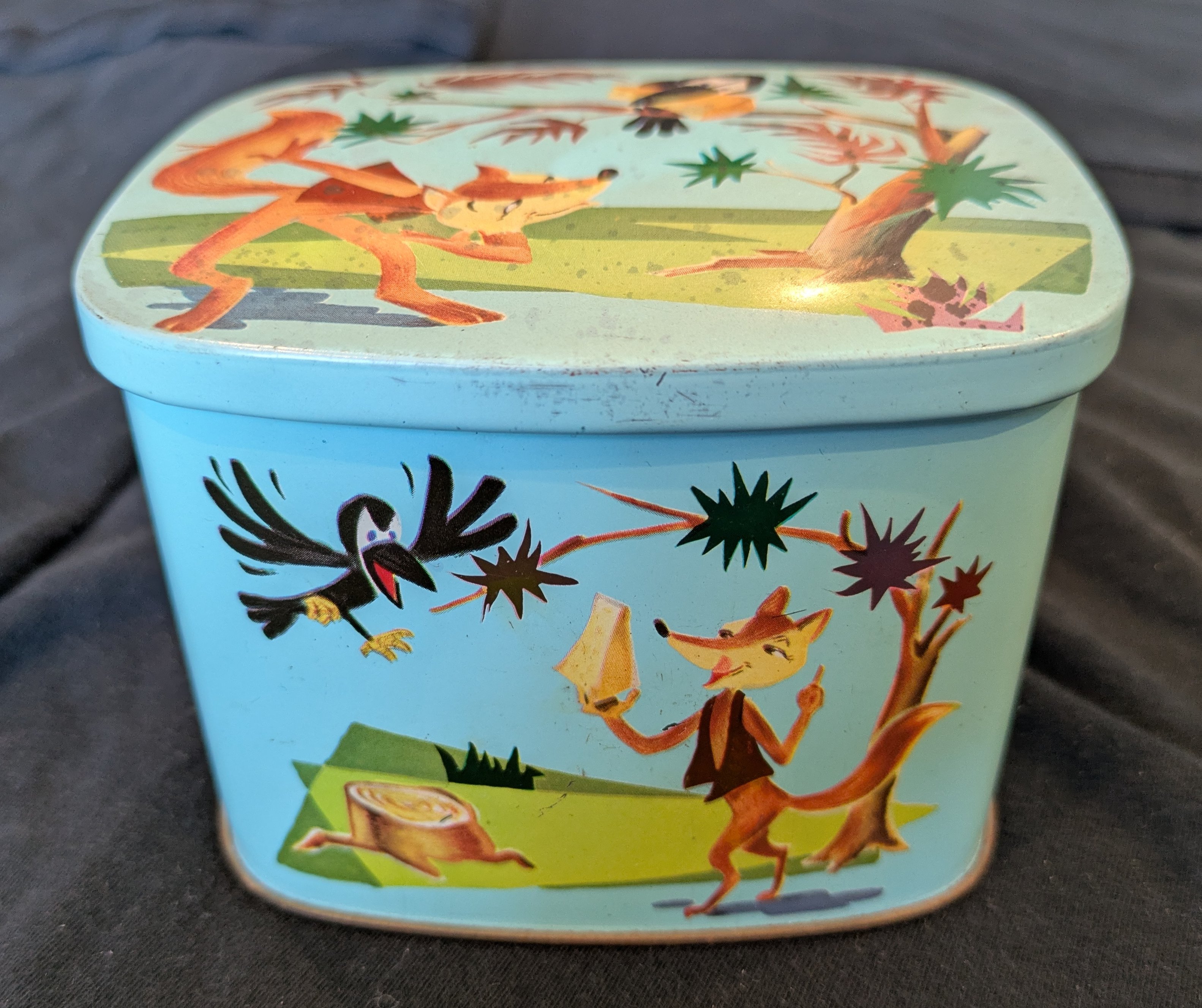One smaller side has the cheese falling from the singing crow’s beak