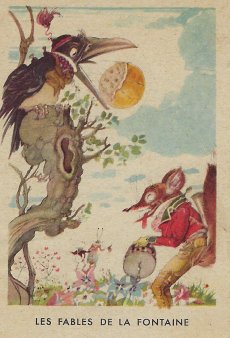 1950? Seven cards from a set using illustrations from Felix Lorioux advertising Chicoree Williot. Nantes: Imprimerie Moderne. $8 each from Bertrand Cocq, Calonne-Ricouart, France, Sept., '20. FC and an extra of "Weasel in a Granary" for €3 from clajamal through Ebay, April, '22.