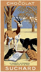 1980? Twelve numbered cards in strong portrait format (2⅜" x 4⅛") distributed among five "families" of Suchard: Chocolat, Velma, Milka, Cacao, and Noisettine. €25 from Albert Van den Bosch, Antwerp, Belgium, Feb., '12. BF from olivier9682 through Ebay for €6.50, July, '22.