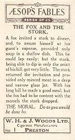 1932 Aesop's Fables. W.H. & J. Woods Ltd., Cigarette Manufacturers. Preston. Series of 25. $20 at Noah's Ark, Milwaukee, June, '87. Second set for $13.50 from Colin Fawcett, Wisbech, England, through Ebay, Sept., '01.