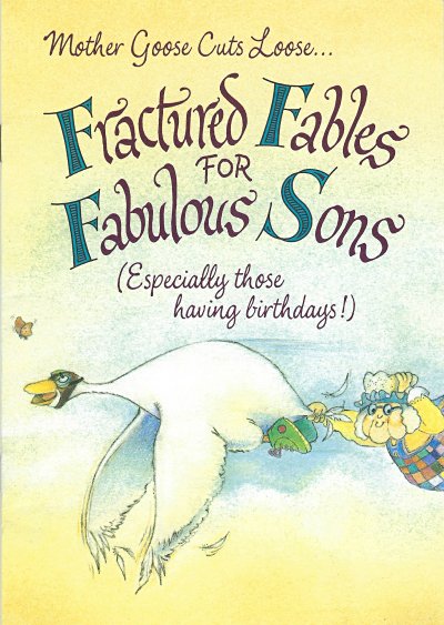 1989 "Fractured Fables for Fabulous Sons (Especially those having birthdays!" Hallmark Cards. $5.99 from Rubber Stamp Attic through Ebay, July, '18. This birthday card for sons is really a twelve-page booklet offering parodies of nursery rhymes like "Jack and Jill" and "Simple Simon." The parodies regularly turn to routine parental advice, "family phrases that stick through the ages."