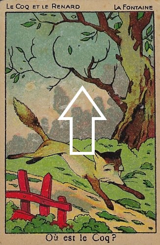 Aesop's Fables > Aesop's Artifacts >...> Colored French "La Fontaine" Hidden Picture Cards > DuroyonFoxandCockSolution
