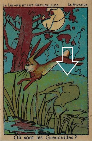 Aesop's Fables > Aesop's Artifacts >...> Colored French "La Fontaine" Hidden Picture Cards > Rabbit and Frogs Solution
