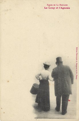 1901? A. Bergeret Phototype. Three more cards offering "The Rooster and the Partridge"; FG; and "The Wolf Become a Shepherd." No message, stamp, or postmark. Nancy: Phototypie A. Bergeret et Cie. Gifts of Bertrand Cocq, Calonne-Ricouart, France, August, '15.