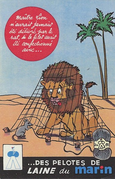Master Lion would never have been saved by the mouse if the net had been made with "Sailor" wool. | |