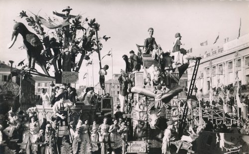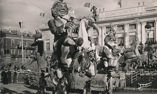 1953 Eight photographic postcards of the "Carnaval de Nice," each recording a float presenting a fable of La Fontaine with mention of its producer. Les Éditions "MAR," Nice. $80 from Bertrand Cocq, Calonne Ricouart, France, Sept., '18.