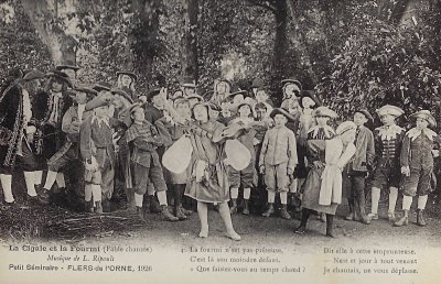1926 Series of six photographic postcards representing a musical performance of GA by Petit Séminaire Flers-de-l'Orne. Music by L, Ripault. €60 from histoirepostale83 through Ebay, Dec. '19.