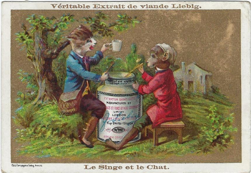 This may be our best preserved set of Liebig's first fable set. Albert has them listed as from 1883. I think the usual date given is 1884. Now I am tempted to invest in an English language set available on Ebay. The collector's urge is hard to repress!