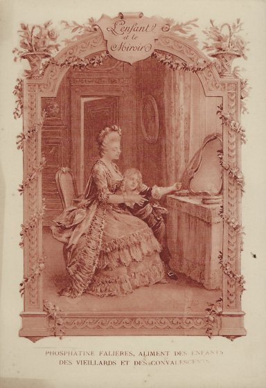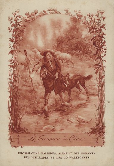 1910? Twelve 7½" x 5¼" cards engraved by Devambez in Paris, picturing and presenting Florian's fables but not in full color, as in an otherwise almost identical set, but rather in monochrome. "Édité par la Phosphatine Falières." Gift of Bertrand Cocq, Calonne-Ricouart, France, August, '15. Now six further cards for $6 each from Bertrand, Sept., '21.
