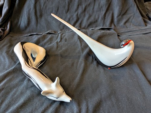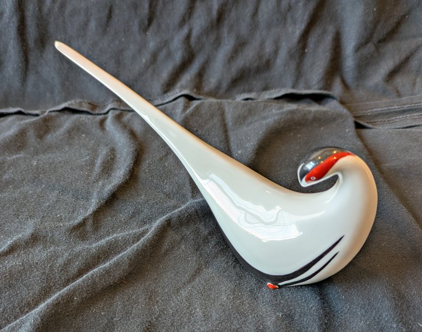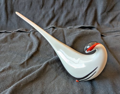 1958 Porcelain Pheasant. Cmielow Porcelain Works. Cmielow, Poland. Designed by Hanna Orthwein. 8” long. Hand-painted. Source unknown.