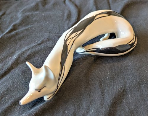 1956 Porcelain Fox. Cmielow Porcelain Works. Cmielow, Poland. Designed by Lubomir Tomaszewski. 7.75” long. Hand-painted. Source unknown.
