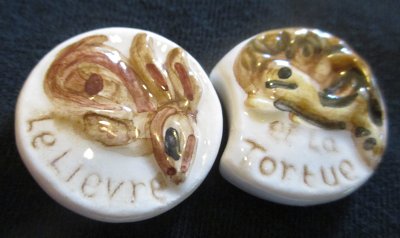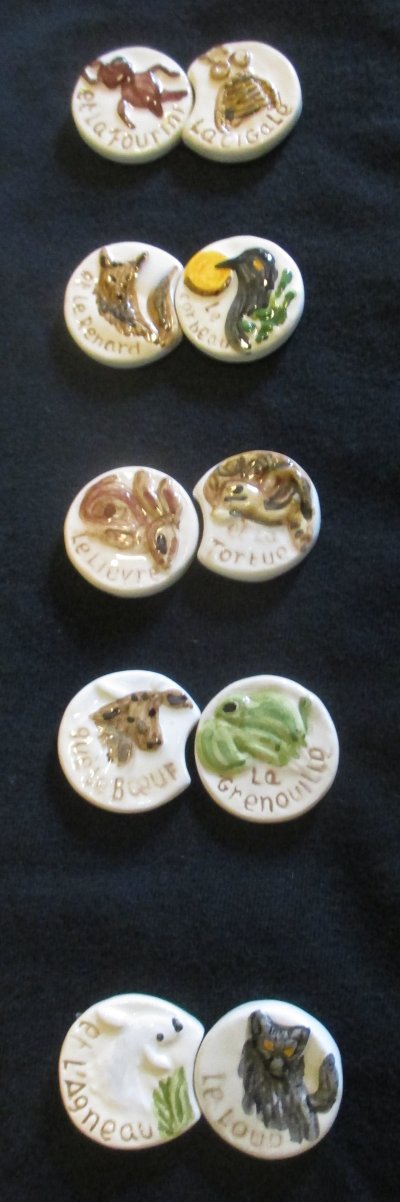 1996 Complete set of 10 Nex fable fèves. Matching pairs. €32 from Monique Gottero, Aulon, France, through Ebay, Dec., '21.