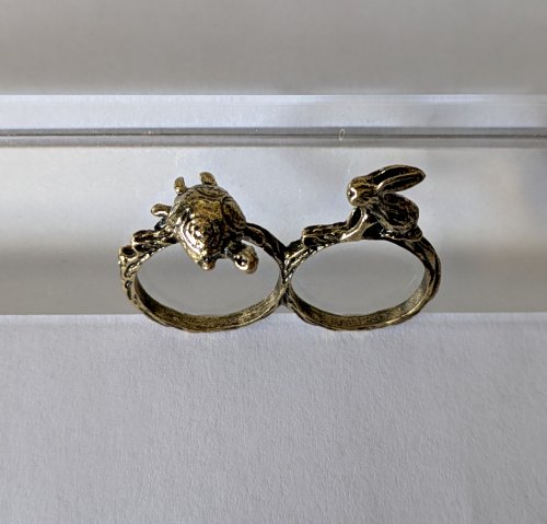 2000? Double Ring Featuring TH. Plastic? Two copies, one with defective tortoise. Unknown source.