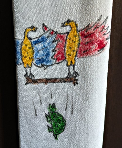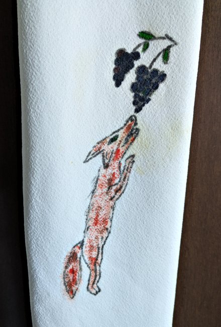 Eric brought together two dear facets of my life: priestly ministry and fables. Among the fables recalled here are TH; TT; LM; “Three Fish”; “Stag at the Pool”; “Retired Rat”; FG; BF; “Heron”; and OR. I offer two close-ups from a treasured creation.