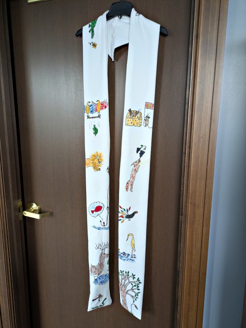 1993 Stole Featuring Fable Scenes. Eric Heinzen, student in CLC 325 at Creighton University.