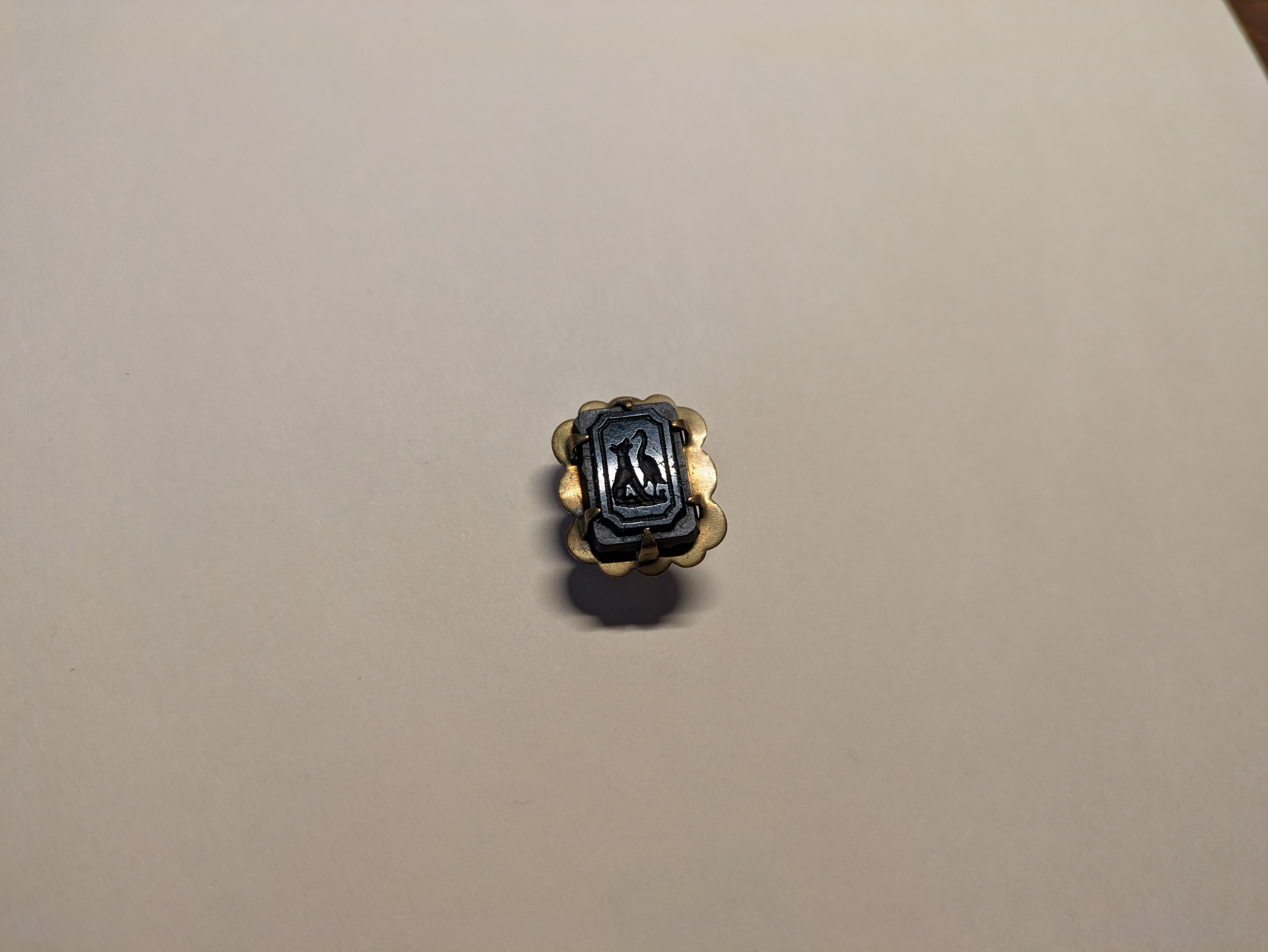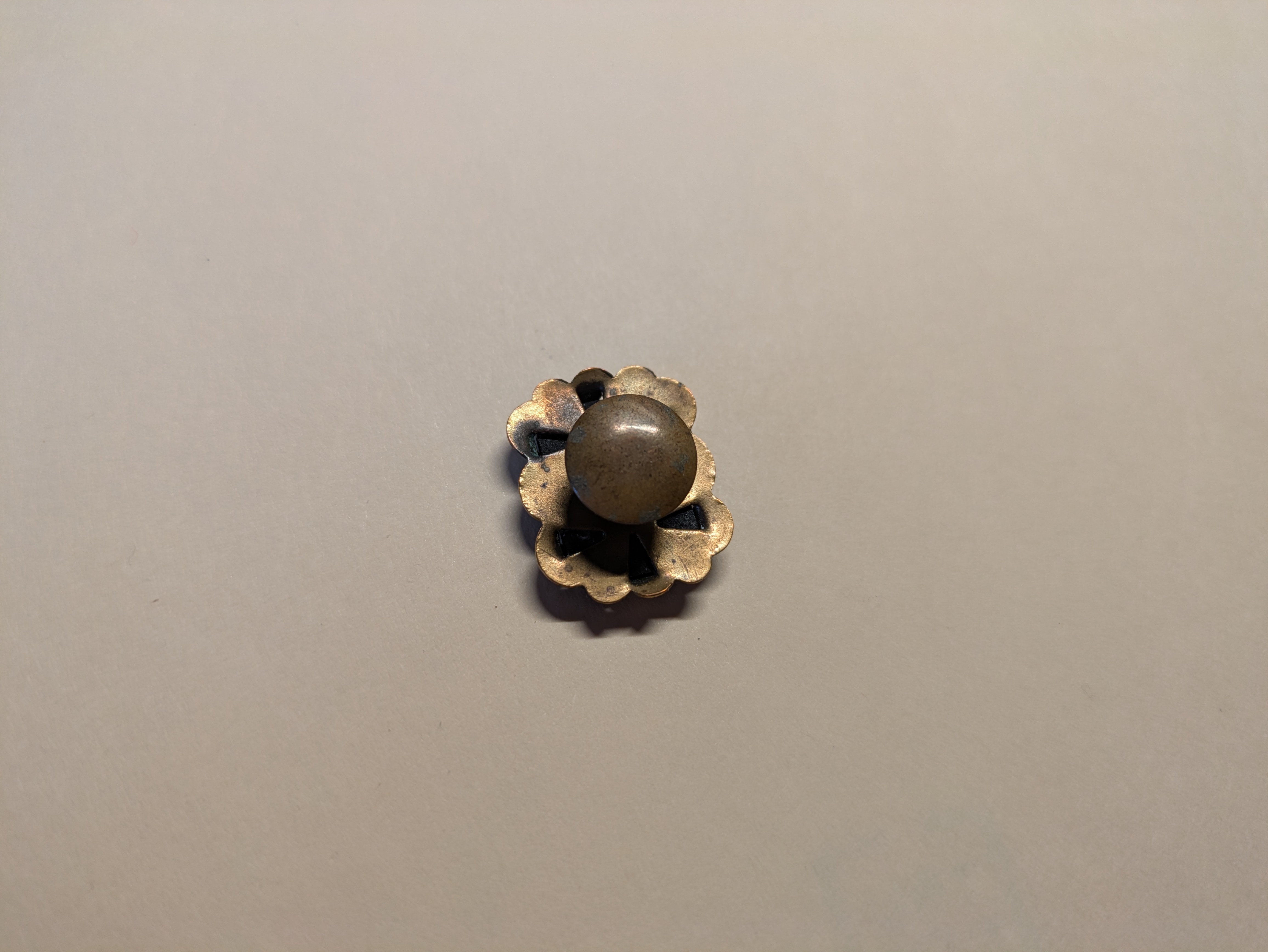 Stud? Button? Cufflink? I have tried to use some glare to show the miniature scene on the face of this piece. The rounded back does not seem to be separable. Comparable objects on the web tend to be listed as buttons. If there is no way to pin it, can it be a brooch?
